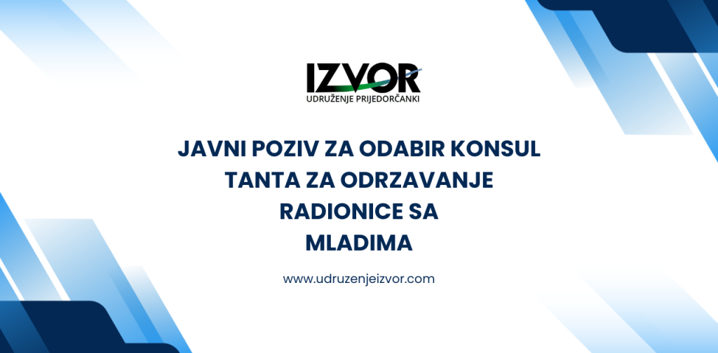 JAVNI POZIV ZA ODABIR KONSULTANTA ZA ODRZAVANJE RADIONICE SA MLADIMA